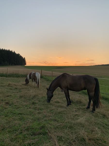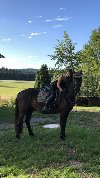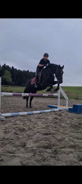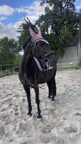 With a heavy heart, I am selling my 12-year-old gelding Solero (height: 15.5 hh), as I need to move for university. Solero is a very affectionate and cuddly horse. He is solidly trained in dressage up to level A and also enjoys jumping up to 90 cm. In the field, he is confident, but he requires an experienced rider when ridden alone. He is well-behaved in handling, shoe- and load-safe, and gets along well with other horses. I am looking for a loving home where he will receive the attention he deserves, as his well-being is my top priority.