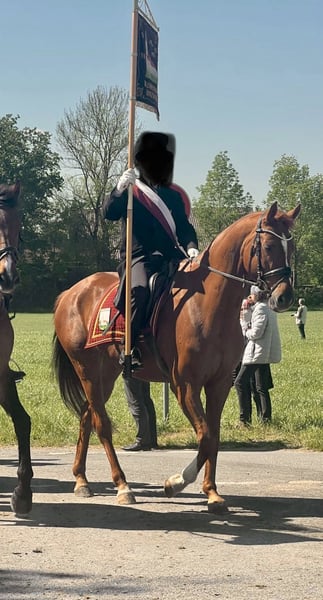 Schweren Herzens verkaufe ich meinen 14 jährigen Wallach. Er wurde bei mir geboren und ist seit der ersten Sekunde in meinem Besitz. Er hat noch nie etwas schlimmes erlebt. Er ist 168 cm groß und absolut liebenswert und verschmust. Er trägt das Herz am richtigen Fleck. Er wird nur verkauft da ich ihm zeitlich nicht gerecht werden und er darunter leidet. Er liebt eine abwechslungsreiche Beschäftigung.In der Dressur ist er auf gutem A- Niveau. Außengalopp beherrscht er. Meine Tochter 15 Jahre alt reitet ihn hin und wieder auch . Springen macht ihm ebenso Spaß . Er muss nicht jeden Tag geritten werden. Gemütliche Ausritte oder Spaziergänge hat er ebenso sehr gerne. Jedes Jahr geht er mit meinem Mann nach Weingarten auf den Blutritt. Da ist er sehr gelassen. Leider ist er seit seiner Kindheit ein Kopper. Er macht es nicht immer. Auf der Koppel die er regelmäßig in der Gruppe besucht ist überhaupt nichts. Wir hatten noch nie gesundheitliche Probleme damit. Allgemein war er nie krank. Aktuell wurden die Zähne frisch gemacht. Der Verkauf fällt mir überhaupt nicht leicht und ich wünsche mir für ihn ein tolles Zuhause mit Koppelgang. Sein Dressursattel und seine Trense, Decken können übernommen werden. Standort : 88515 Ittenhausen Keine Händler oder Schulbetriebe