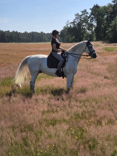 A lovable 16-year-old gelding, who impresses with his versatility and reliability, is for sale. He is finely schooled, has good basic gaits, and has been consistently trained and well cared for. Whether for dressage work, groundwork, or relaxed rides – he is motivated, attentive, and always eager to do his best. In the field, he is absolutely dependable, behaves well both alone and in a group, is familiar with dogs, and is gentle and friendly in everyday handling. He is farrier- and loading-inclined, making him easy to handle overall. Thanks to his gentle nature, he is especially suitable for sensitive leisure riders or ambitious amateurs seeking a horse with heart and character. 📍 Location: Wahlitz, 39175 📞 Contact: 015906553397 A wonderful horse for people who value honest partnership both in the saddle and on the ground. 💛