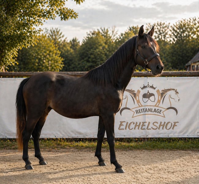 Wir züchten Warmblüter und Deutsche Reitponys. Diese bilden wir aus und stellen sie auf Turnier vor. Die Ausbildung erfolgt bis zur schweren Klasse. Desweiteren bieten wir Fohlenaufzuchtplätze in der Herde mit viel Auslauf, Pensionsboxen, Beritt etc. an.