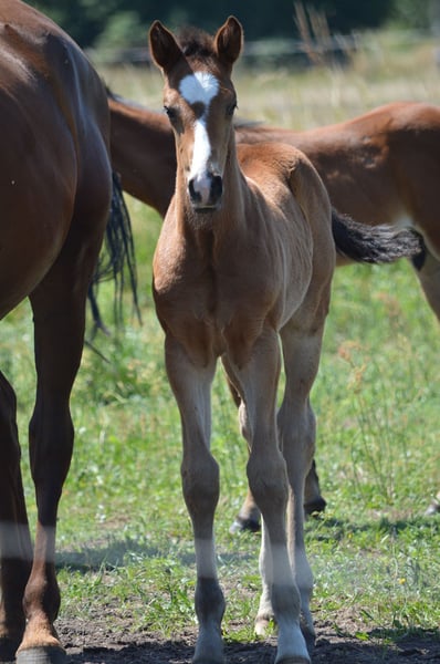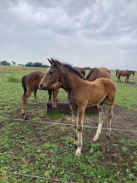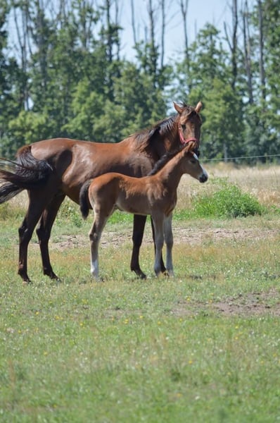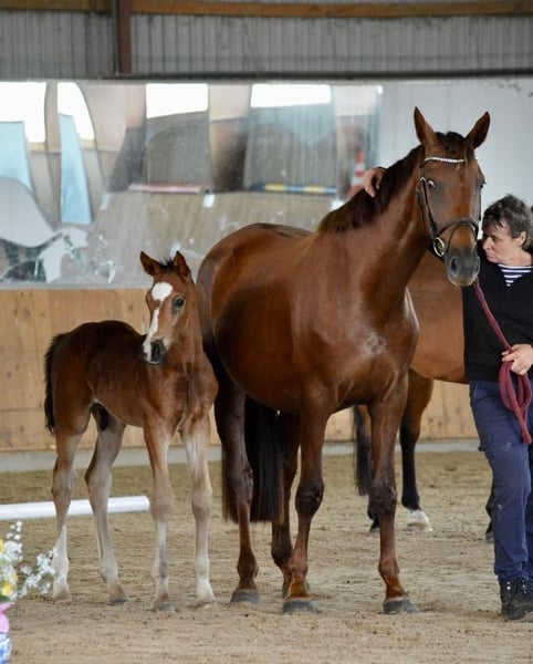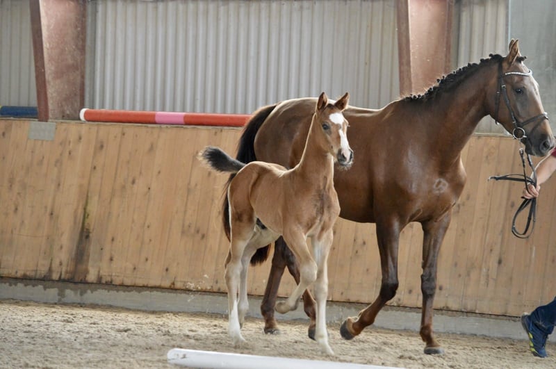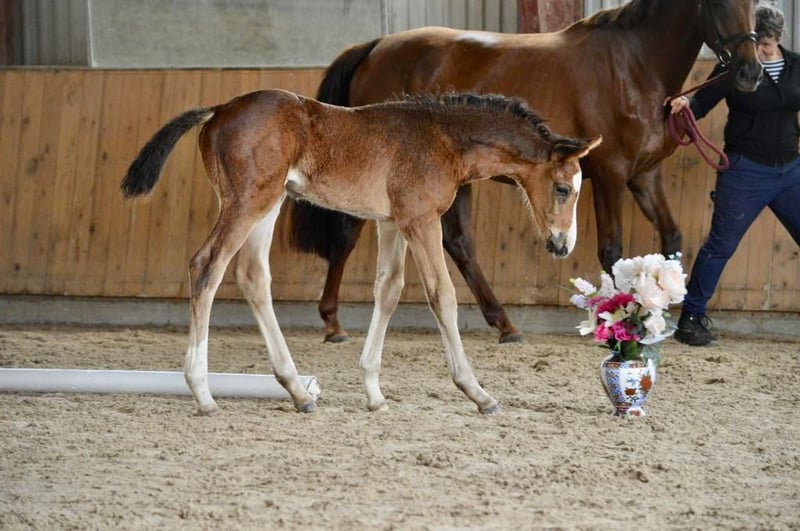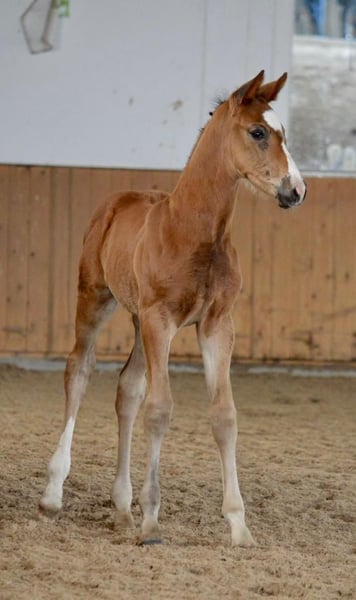 Een typevolle, krachtige bruine ruin die zeker interessant kan worden voor de springsport. De vader was succesvol tot ****sterren S springen. De moeder is een jonge getalenteerde merrie, afkomstig van onze Carthago-zoon Cappucino, die succesvol 1,60m sprong onder Marco Kutscher. Ook de moeder kon zich bij haar eerste wedstrijdstart plaatsen. Het veulen heeft 47% volbloed en daarmee ook genoeg pit. Hij groeit op in een kleine veulen kudde dag en nacht op een weide. https://www.horsetelex.de/horses/pedigree/2507999/lupo Bij interesse en voor meer informatie kijken we uit naar uw contactopname.