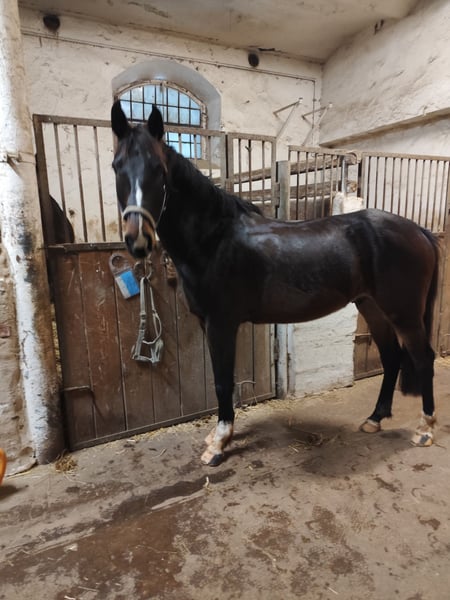 Purtroppo anche noi non possiamo tenere tutti. Siamo un piccolo allevatore amatoriale e conserviamo esclusivamente le nostre puledre. Clemens è nato nel 2022 e è cresciuto robusto in un branco. Suo padre è Castello Branco, stesso successo fino a S***. Sua madre, Delaynie, è anch’essa nata da noi e ha ottenuto buoni risultati fino a S* nel salto ostacoli con la nostra figlia. Delaynie è una purosangue da Domenico xx, con madre Ferman-Lonely Boy-Landgraf-Indentat. Clemens è il primo puledro e, attualmente, con circa 160 cm, non è il più grande. Da stallone castrato, crescerà ancora qualche centimetro, ma ci sono anche persone più basse. Cerchiamo qualcuno che trovi il suo "compagno di vita", che abbia tempo per dedicarsi a lui e per educarlo. È ancora grezzo, è stato iniziato alla longe e conosce il salto libero. Per ulteriori informazioni, chiamare il 01772423528. Si prega di contattare solo in caso di serio interesse; tutto il resto è tempo perso e non ha senso. Ormai conosce sella e briglia e si sta abituando al peso del cavaliere. È bravo e coraggioso. Con un’ulteriore formazione, il prezzo sarà adeguato.