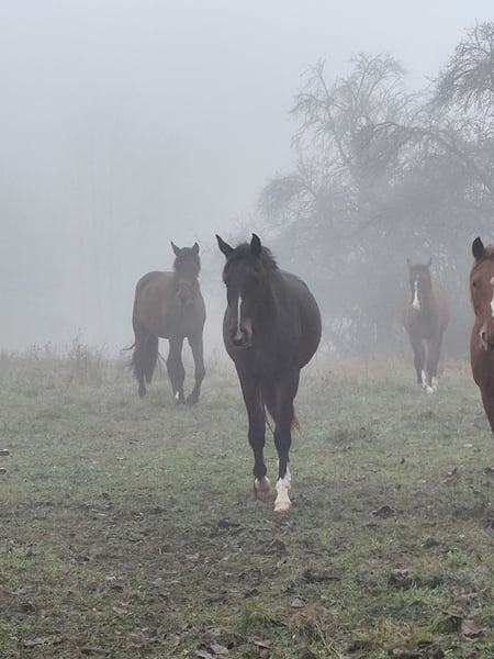 Leider können auch wir nicht Alle behalten. Wir sind ein kleiner Hobbyzüchter und behalten ausschließlich unsere Stutfohlen. Clemens ist 2022 bei uns geboren und robust im Herdenverband aufgewachsen. Sein Vater ist Castello Branco, selbst hocherfolgreich bis S***. Seine Mutter Delaynie ist ebenfalls bei uns geboren und mit unserer Tochter bis S*- Springen platziert. Delaynie ist eine Halbblutstute vom Domenico xx aus einer Ferman- Lonely Boy- Landgraf- Indentat Mutter. Clemens war das Erstlingsfohlen und ist, im Moment mit ca. 160 cm nicht der Größte. Als Wallach wird er sich noch einige Zentimeter wachsen, aber es gibt ja auch kleine Leute. Er sucht SEINEN Menschen, der Zeit hat, sich mit ihm zu beschäftigen und in auszubilden. Er ist noch roh, wurde anlongiert und kennt Freispringen. Weitere Auskünfte unter 01772423528. Bitte nur bei ernsthaften Interesse den Kontakt herstellen, alles andere macht keinen Sinn und kostet nur Zeit.