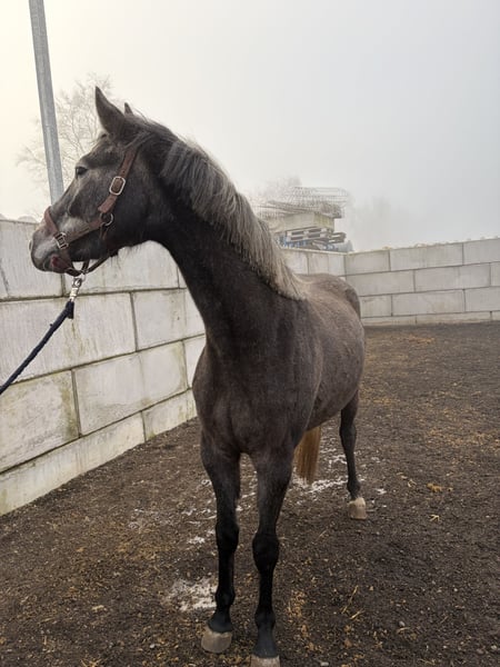 Verkaufe deutsches Sportpferd – Wallach, geb. 2022, Schimmel, 160 cm Stockmaß Dieser vielversprechende und sehr umgängliche Wallach wurde selbst von uns aufgezogen und ist somit von klein auf Menschen Kontakt gewöhnt. Die Mutter ging selbst bis M* erfolgreich im Sport und ist die führende Zuchtwert Stute im Zuchtverband Baden-Württemberg. Ihre Mutter, sowie ihr Vater waren beide bis 1,60m Springen erfolgreich. Zudem bringt die Mutterlinie weiter platzierte Pferde in der schweren Klasse hervor. Der Vater Colman ist ein weltweit bekannter Hengst und bringt zudem ebenso sehr talentierte, umgängliche und für den Sport ambitionierte Nachkommen hervor. Der Wallach selbst ist angeritten und könnte dieses Jahr mit ein wenig Vorbereitung seine ersten Springpferde Prüfungen gehen. Bei Interesse gerne melden!