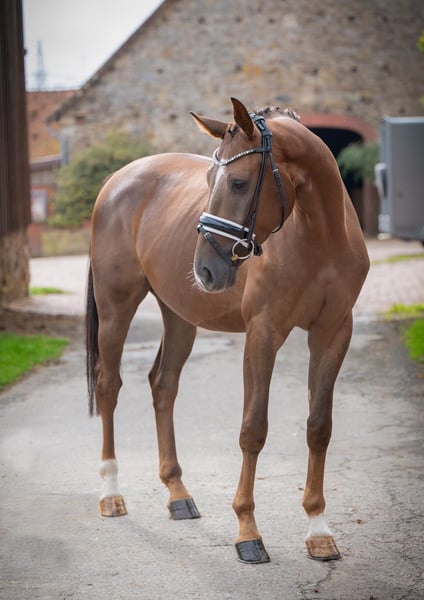 Talisman ist ein 4-jähriger, liebevoll aufgezogener Dunkelfuchs aus eigener Zucht, der durch seine besondere Ruhe, Klarheit und Menschenbezogenheit besticht. Er zeigt sich bereits jetzt als absolut verlässlicher Partner im Umgang und unter dem Sattel – ein Pferd, das Vertrauen schenkt und Sicherheit vermittelt. ✨ Sein Charakter: • ausgesprochen brav und umgänglich • menschenbezogen und freundlich • klar im Kopf, neugierig und lernwillig ✨ Ausbildung: • sicher im Umgang (führen, putzen, anbinden) • geht alleine problemlos auf den Hänger und wieder herunter • kennt Doppellonge • läuft über Trabstangen und macht kleine Sprünge • geht bereits alleine eine kleine Runde ins Gelände • Reiterwechsel kennt er ebenfalls Talisman ist für sein Alter außergewöhnlich abgeklärt und bringt eine tolle Basis mit. Er eignet sich ideal für Reiter, die ein junges Pferd weiter fördern möchten – auch für ambitionierte Einsteiger mit Unterstützung. ✨ Abstammung: Total Diamond x Contendro – leistungsgeprägt und interessant für vielseitige Förderung ✨ Besonderheit: Ein Pferd mit viel Herz und Charakter, das seinem Menschen gefallen möchte und dabei stets ehrlich bleibt. Wir wünschen uns für Talisman einen wertschätzenden Platz, an dem er weiter wachsen darf. Ein Kennenlernen mit ausreichend Zeit ist selbstverständlich möglich.