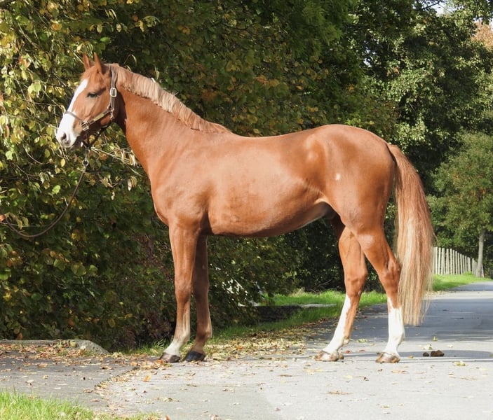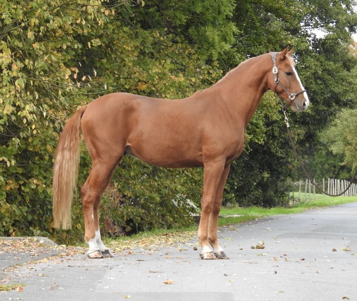 ❗️Due to the high volume of inquiries, we kindly ask for phone inquiries only.❗️ For sale is a 4-year-old chestnut gelding with a current height of approximately 1.66 m. The gelding comes directly from the breeder and is very well-mannered in daily handling. He demonstrated above-average free jumping ability right from the start and is already familiar with lunging and rider weight. Due to personal circumstances, the decision to sell has been made with a heavy heart. Without prior phone contact, we will not send videos of our horses; therefore, please refrain from requests for "please send video." Viewings are possible at any time. For further questions, please feel free to contact us by phone at 0171 530 33 40. All rights to the images belong to Sport- und Freizeitpferde Wilfried Oestersandforth. Distribution or publication is strictly prohibited.