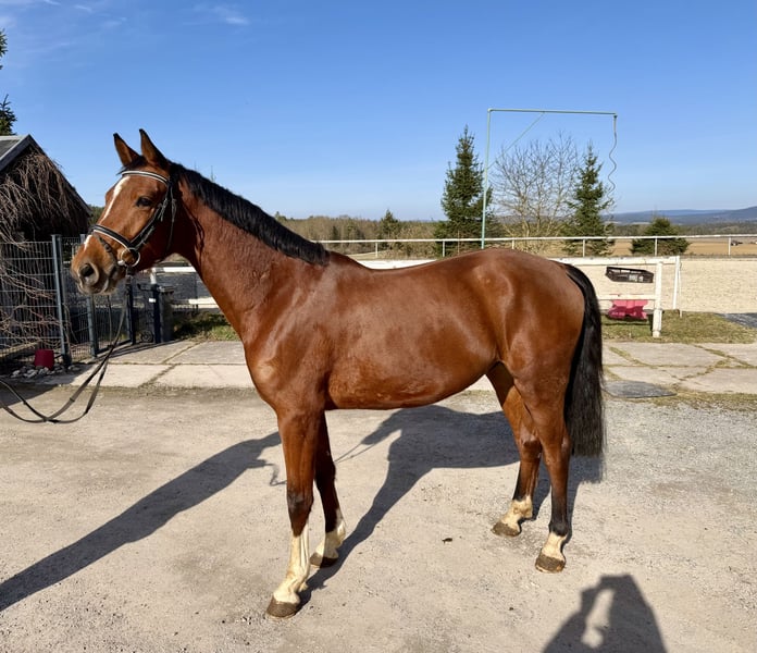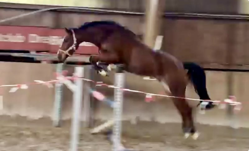 4.jăhriger hellbrauner Wallach Vater: Diablue PS (Diaron/Diarado) Mutter: LaSchocka (Lancelot Quainton/Lansing) Aktuell 1,67 Stockmass Sehr brav und souverän im Umgang Erste Bewegung unterm Sattel in Schritt, Tab und Galopp meistert er super und ist weich zu sitzen Freispringen mit guter Bascule, kraftvoll und mit viel Vermögen ausgestattet Er ist ein Sportler wie man sich ihn vorstellt. Auf Anfrage Videos vorhanden, wir bitten von unterirdischen Preisvorschlägen abzusehen. Fragen bitte nur Telefonisch unter 01751704324