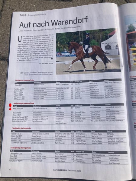 Verkaufe Dressur-Nachwuchspferd aus 2022 Dieser ausdrucksstarke und vielversprechende Dressur-Nachwuchs-Wallach besticht durch seinen Ausdruck, seine Optik (4 x weiß) sein Wesen und seine beeindruckende Bewegung. Dexter ist altersgemäß schonend und gut angeritten, fein in der Hand und überzeugt unterm Reiter mit perfekter Anlehnung. Er hat keinerlei Unarten (kein Buckeln, kein Schlagen) und ist stets gut aufgelegt und lernwillig. Geeignet für den Dressursport mit Potenzial für Mehr. Dexter hat in diesem Jahr (2025) seine erste Reitpferdeprüfung erfolgreich gemeistert. Dexters Halbschwester (gleiche Mutter) - Bella Ducati hat sich dieses Jahr für das Bundeschampionat in Warendorf qualifiziert, bei den 6 jährige Dressurpferde mit der Note 8,5 Gut erzogen, schmiede- und verladefromm. Ideal für Reiter, die ein talentiertes Pferd suchen, ohne Unarten, das sowohl im Training als auch auf dem Turnierplatz glänzt. Dieser 3-jährige Wallach ist so ungewöhnlich angenehm und leicht zu reiten, da kann selbst mancher 5-jähre nicht mithalten. Dexter ist wirklich von Amateuren gut zu reiten. Wichtige Hinweise: • Aufgrund des Alters nicht für Anfänger geeignet. • gute Röntgenbilder ohne Risikobefund inkl. Rücken liegen vor. Bei Interesse oder für weitere Informationen stehe ich gerne zur Verfügung: Telefon: 08531 3102826 oder 0171 6087030 - Ein Probereiten ist jederzeit möglich. Reithalle vorhanden. Wir freuen uns auf Ihre Nachricht!