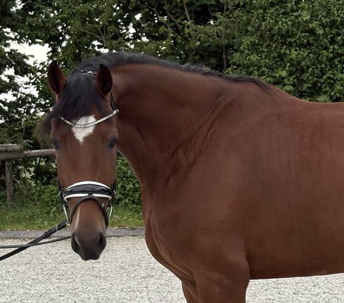 Vincent Vega combines an excellent dressage pedigree with outstanding movement quality and an exceptional temperament. He is sired by the currently highly sought-after stallion Von und Zu, whose offspring regularly set auction price records and celebrate wins. His dam line is equally impressive: descendants from this lineage have achieved success up to S*** level, demonstrating the strong sporting potential of this breeding. This quality is clearly evident under saddle: Vinci impresses with above-average movement, a clearly defined rhythm, great elasticity, and an active, powerful hind leg that consistently places itself securely beneath the center of gravity. His modern type and attractive exterior complete the overall sporty appearance. Beyond his potential in the dressage arena, Vinci captivates with a lovable and uncomplicated character. He is a true gem in daily handling—always friendly, personable, and attentive. He would do anything for a treat, enjoys extensive grooming sessions, and remains calm and well-behaved during farrier visits, loading, and handling. Under saddle, Vinci proves to be a motivated, eager-to-learn, and pleasant riding partner who always aims to please his rider. Good X-ray results, including the back, are available.