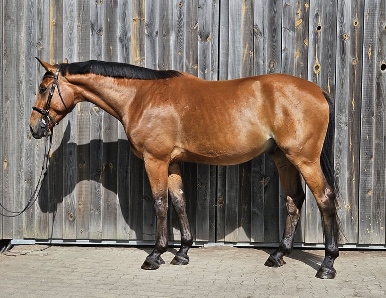 Top young horse directly from the breeder For sale is an impressive 4-year-old gelding by Verdi out of an Askari mother (who was successful up to 1.20m). With a height of 178 cm, he is not only a head-turner but also a talented athlete. The dam line has produced internationally successful horses up to 1.35m. This young gelding shows great potential in jumping and is ready to enter the competition scene. He has good movement, a balanced personality, and a high willingness to learn. Vito G has been developed according to his age, is well-behaved in handling, and has a friendly nature that makes him an ideal young horse for ambitious riders. Current X-ray images are available. If you are interested or would like more information and videos, please feel free to contact me.