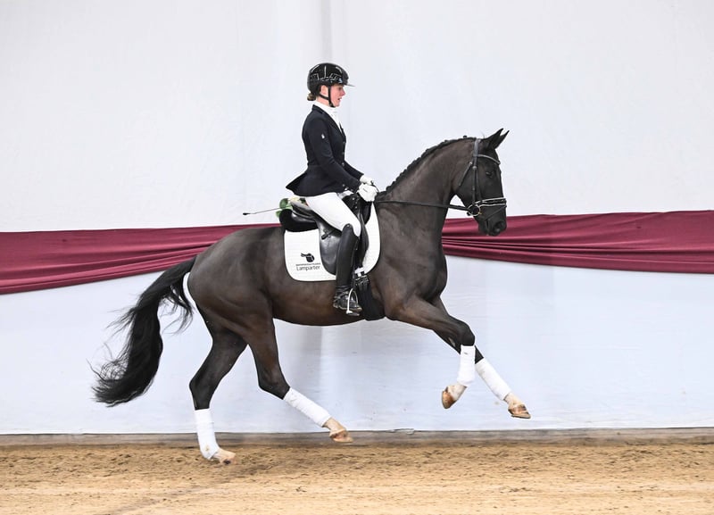 Dieser sympathische Rappe ist ein Sohn des großartigen Trakehners Gribaldi, der wie kaum ein anderer Hengst so durchschlagend Dressurtalent vererbt hat. Die Mutter Cariba war mit der Tochter des Züchters im Dressurviereck bis zur Klasse S vielfach erfolgreich. Ihr Sohn zeigt sich mit höchsten Rittigkeitswerten und bester Einstellung zum Sport. https://auktion.pzvbw.de/auctions/
