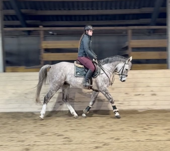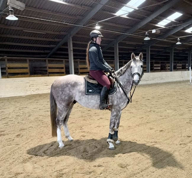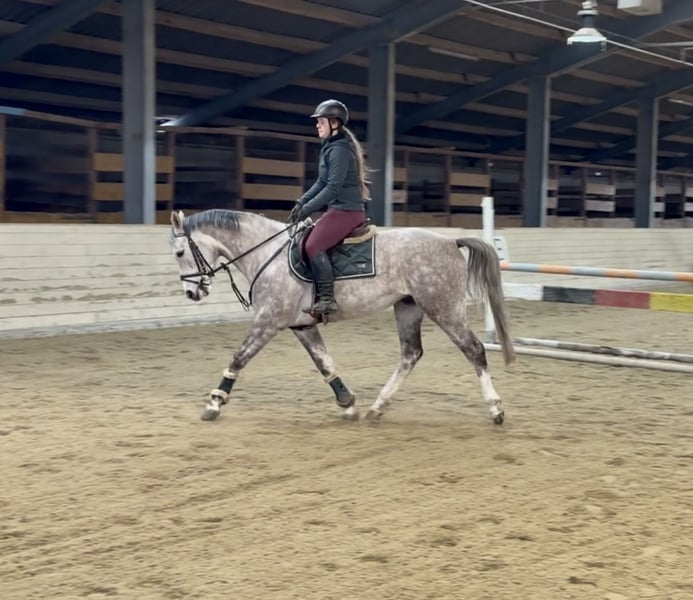 Dieser 2021 geborene Wallach nach For Treasure VDL erfüllt alle Eigenschaften und Erwartungen die man an ein junges Pferd haben kann. Der hübsche Apfelschimmel ist ca. 160 cm groß und super kompakt gebaut. Er ist immer bemüht alles richtig zu machen. Vor allem beim Springen zeigt sich dieses Pferd sehr begabt. Bei entsprechender Förderung kann dieser Wallach durchaus eine Karriere im Sport machen. Da dieser Schimmel sehr einfach zu reiten ist, wird er auch nicht so starken Reitern eine große Freude bereiten. Da Pferd geht derzeit barhuf und ist natürlich gesund. Weitere Infos gerne per WhatsApp oder telefonisch unter: 00436603632373 Standort: Pelmberg 15/ OÖ Besichtigung und Probereiten gerne nach Terminvereinbarung! Der Transport des Pferdes kann gerne übernommen werden!