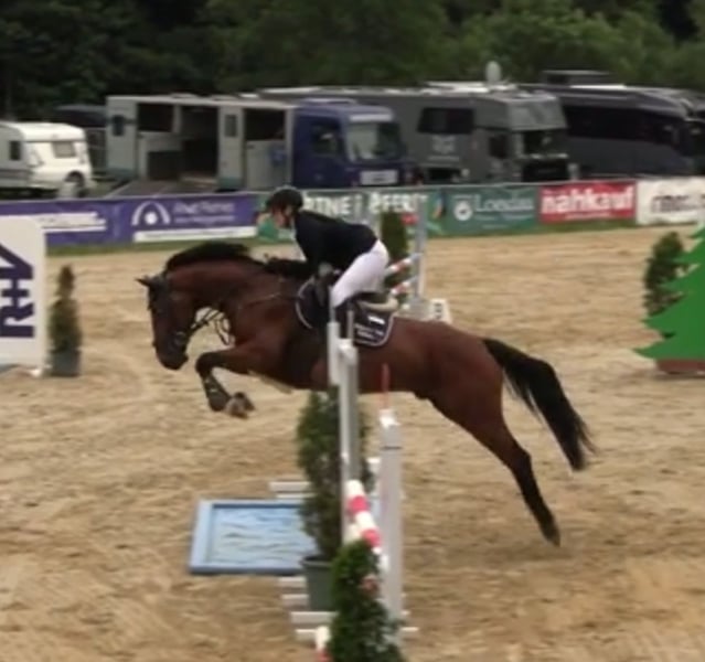 Zum Verkauf steht ein 5-Jährige Wallach von Cheetano (Coriano x Capitol II) mit einem Stockmaß von 166cm. Charlie ist im April diesen Jahres seine erste Springpferdeprüfung Klasse A gestartet und konnte sich direkt platzieren. Er ist Springpferde A* siegreich gewesen und wurde Springpferde A** vorgestellt. Im Parcours zeigt er sich leistungsbereit, mutig und mit guter Übersicht – wenn er die nötige Sicherheit vom Reiter bekommt, springt er wirklich alles. Er ist fein zu reiten. Aufgrund der Abstammung evtl. Auch für die Dressur interessant. Ich könnte ihn mir allerdings auch als Freizeitpartner vorstellen. Im täglichen Umgang ist Charlie etwas speziell und sensible und ist aufgrund seines Alters kein reines Anfängerpferd. Er benötigt einen einfühlsamen, geduldigen Menschen, der ihm eine konsequente Führung gibt und sich Zeit nimmt. Dann zeigt er sich sehr kooperativ und leistungswillig. Er ist natürlich Schmiede- und verladefromm kennt Gelände alleine und in Gruppe. Gesundheitliche Defizite sind nicht bekannt. AKU von 12/24 vorhanden inkl. Röntgenbilder Videos und Sportname gerne auf Anfrage.