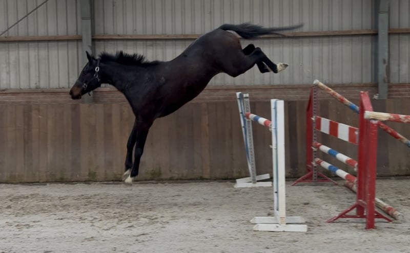 Mooie 4,5jarige zwartbruine ruin van Diarado. Deze ruin heeft een mooie scherp en atletisch gebouwd type. Hij beweegt lichtvoetig en laat een goede buiging in het achterbeen zien. Op de sprong laat hij veel kwaliteit zien. Hij weet de sprong telkens goed in te schatten. Hij heeft snelle reflexen en toont een goede techniek waarbij hij de sprong achter telkens goed afmaakt. Gezien zijn scherpte type en een afstamming wat terug gaat op een volbloed lijn, maakt hem ook zeker interessant en geschikt voor de eventing sport. Tot op heden is deze ruin nog onbeleerd. Wie gaat er met deze knapperd aan de gang ? Bij interesse graag telefonisch contact opnemen of via de app. +31(0643197337 of +31(0)648271956