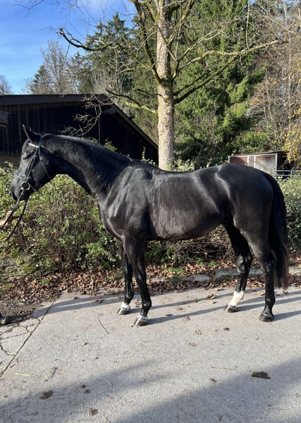 This beautiful gelding comes from our own breeding program. He was born and raised here on our farm. Unfortunately, he sustained a pasture injury in June 2023, which required him to be in his box for a period of time. At that time, he was still a stallion, but despite the box rest, he remained very well-behaved, easy to handle, and always mentally alert. He was allowed to return to the pasture for another year and was lightly backed this summer. From the beginning, he proved to be very eager to learn and well-behaved. He is also familiar with free jumping, which he enjoys greatly and demonstrates good ability. Current X-rays and a veterinary assessment are available. The injury has healed very well and does not affect him. However, due to his remaining scar and the resulting X-ray findings, he is being sold at a significantly reduced price.