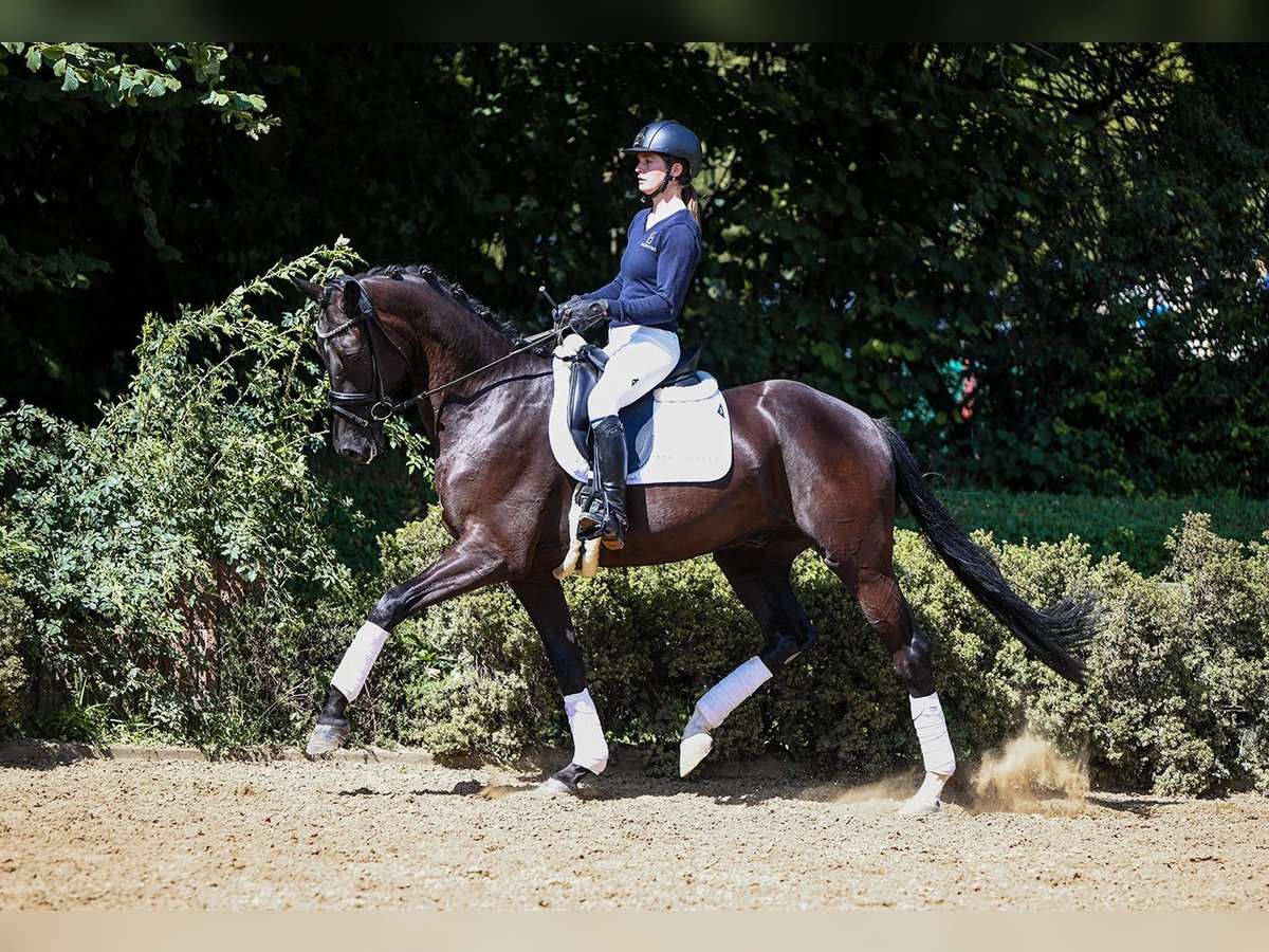 BURGHOF OPEN SALES WEEKEND from October 2nd to 5th, 2025 Try riding - Place a bid - Buy a horse All information and the entire collection (32 sale horses) at: https://brodhecker-burghof.de/open-sales-weekend-kollektion/ With Cancún, we present a strong-moving son of the top stallion Cadeau Noir. The stunning black gelding impresses with three excellent basic gaits, outstanding rideability, and the best temperament values. Thus, the charming DSP gelding is ideally suited as a sport partner for ambitious amateur riders. Father Cadeau Noir shines under Moritz Treffinger with international successes up to the U25 European Championships, including gold medals at the German Championships and the U25 European Championship title with over 80% in the freestyle. Mother Donna Doria has already produced numerous highly successful offspring – including Revaldi by Repertoire (successful at Grand Prix level). Maternal grandfather Donnerball, himself internationally successful up to Grand Prix, has sired many highly successful offspring with excellent rideability and high willingness to collect. If you are interested in our sale horses, please feel free to contact us by phone or WhatsApp: Show Jumping Horses - Tel. (+49)159/06026914 (Johannes Brodhecker) Dressage Horses - Tel. (+49)172/8733686 (Volker Brodhecker)
