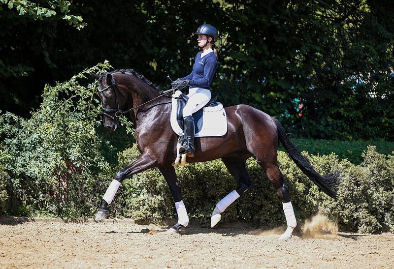 In vendita 35 cavalli da dressage, salto e tempo libero direttamente dall’allevatore. Tutti i cavalli in vendita sono disponibili su: https://brodhecker-burghof.de/sportpferde/ Con Cancún presentiamo un figlio dal movimento potente del campione Cadeau Noir. Il bellissimo castrone baio scuro si distingue per tre ottimi passaggi, una grande maneggevolezza e valori di carattere eccellenti. Pertanto, il affascinante stallone DSP è ideale come partner sportivo per cavalieri amatoriali ambiziosi. Il padre Cadeau Noir si è distinto con Moritz Treffinger ottenendo successi internazionali fino alla categoria U25, tra cui medaglie d’oro ai Campionati tedeschi e il titolo europeo U25 con oltre l’80% nel Kür. La madre Donna Doria ha già prodotto numerosi discendenti di grande successo, tra cui Revaldi di Repertoire (successo in Grand Prix). Il nonno materno Donnerball, anch’egli internazionale fino al Grand Prix, ha generato numerosi discendenti di alto livello, dotati di ottima maneggevolezza e grande disponibilità al raccolto. Per ulteriori informazioni sui nostri cavalli in vendita, non esitate a contattarci telefonicamente o tramite WhatsApp: Cavalli da salto - Tel. (+49) 159/06026914 (Johannes Brodhecker) Cavalli da dressage - Tel. (+49) 172/8733686 (Volker Brodhecker)