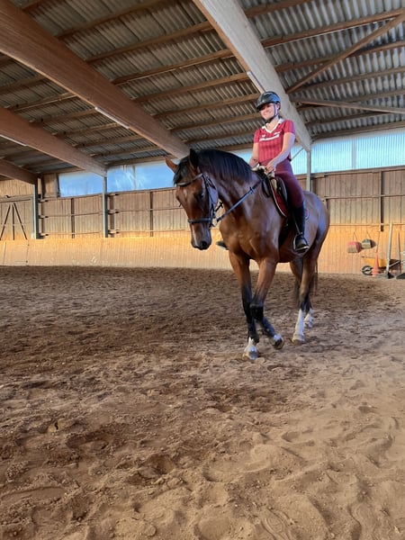 Shakespeare - hübscher dressurgezogener Wallach, angeritten Zum Verkauf steht der hübsche und charmante Wallach Shakespeare, geboren 2021, mit hervorragender Abstammung über Sir Donnerhall I, Ampere und Rousseau. Sein Stockmaß beträgt ca. 1,72 m. Er wurde schonend angeritten, beherrscht alle drei Grundgangarten und kennt einfache Hufschlagfiguren. Shakespeare zeig sich bei der Arbeit absolut unkompliziert, umgänglich und lernwillig. Des Weiteren wurde er vielseitig ausgebildet. Ob Bodenarbeit, Spaziergänge, Freispringen oder auswärts Training auf fremden Plätzen. Er wird explizit als angeritten verkauft. Kein reines Anfängerpferd, geeignet für erfahrene Reiter mit mindestens E- bis A-Niveau. Er wurde regelmäßig beim Hufschmied und Tierarzt vorgestellt. Seine letze Zahnbehandlung erfolge im Dezember 2025 und im Februar 2026 wurde er bei meiner Osteophatin vorgestellt. Auch das Fahren im Anhänger ist ihm nicht fremd. Ich verkaufe Shakespeare aus gesundheitlichen Gründen meinerseits. Aufgrund anhaltender Krankheit mit langen Krankenhausaufenthalten werde ich ihm einfach nicht mehr gerecht. Daher wünsche ich mir für ihn eine fördernde Hand, die sein vorhandenes Potenzial ausschöpfen kann. Reitvideos kann ich gern versenden. Der Preis ist verhandelbar. Standort 17235