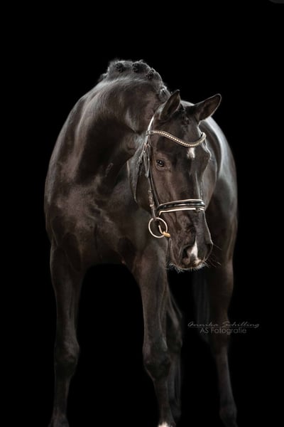 Movement & Type This 5-year-old gelding by Secret out of Stedinger immediately impresses with his modern appearance and expressive type. He also possesses three outstanding gaits characterized by high elasticity, good shoulder freedom, and an active hind leg. Notably, he already demonstrates a strong willingness to collect. Riding & Handling In daily training, he proves to be very well-behaved, calm, and pleasant to ride. He provides his rider with a great sense of security and is therefore suitable even for more nervous riders. In handling, he is completely straightforward and reliable. Training Level - Age-appropriate and gently started, currently at dressage horse class A level - Lateral work initiated - Directly from the breeder Prospects With his quality, rideability, and willingness to collect, he offers excellent prerequisites for a successful career in dressage – a horse that immediately stands out due to his presence alone. - Current X-ray examination available - Detailed video upon request We look forward to hearing from you or receiving your call if you are interested.