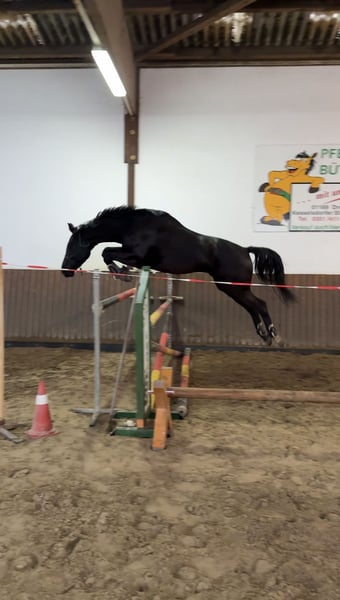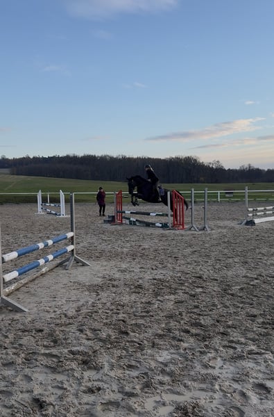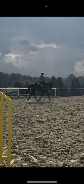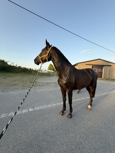 Schweren Herzens muss ich mich von meinem 5 jährigen Wallach trennen. Quantador stammt ab von Quiz x Baloubet du rouet und ist somit wie gemacht für den Springsport. Dahingehend wurde er altersgemäß gefördert. Durch seinen ruhigen, ausgeglichenen Charakter kommt er auch als Freizeitpferd infrage. Er hat viel Freude an der Arbeit mit dem Menschen und ist immer bereit dazuzulernen. Er geht alleine als auch in der Gruppe ins Gelände, kennt es longiert zu werden und wird unter dem Reiter weiter gefördert. Seinem Alter entsprechend muss weiter an der Geduld beim Stillstehen gearbeitet werden. Er kennt Hänger fahren, den Schmied und der Tierarzt ist sein bester Freund :) Er ist gesund, es wurde aber noch kein TÜV gemacht. Er wird mit Zubehör verkauft.