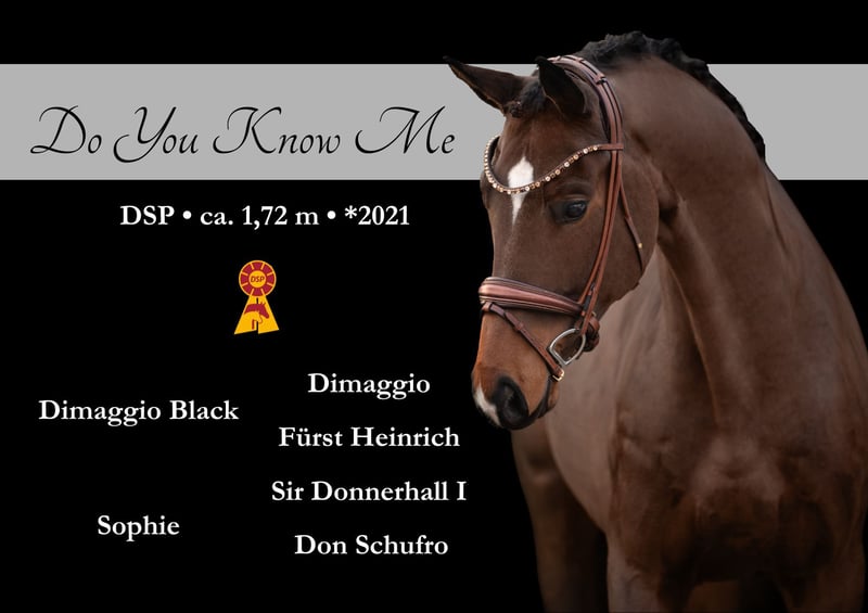Liebe Interessenten, Für Terminvereinbarungen Probereiten senden Sie mir bitte eine WhatsApp. Für weitere Fragen bin ich tagsüber per WhatsApp erreichbar, telefonisch erreichen Sie mich am Besten zwischen 16 und 19 Uhr. Ich freue mich auf eine Kontaktaufnahme www.angelina-devittorio.de ⭐️Do you Know me⭐️ Alter: 4,Jahre (2021) Größe: ca 1,72 m Abstammung: Dimaggio Black x Sir Donnerhall II Ausbildungsstand: Reitpferdeprf platziert AKU: Gute Röntgenbilder vorhanden Im Hengsttyp aufgemacht und von beeindruckender Schönheit präsentiert sich dieser vierjährige Wallach von Dimaggio Black aus einer Sir Donnerhall II -Mutter. Aktuell auf Reitpferde-Niveau, überzeugt er als hochveranlagter Youngster, der schonend und pferdegerecht ausgebildet wurde und dabei Tag für Tag Freude bereitet. Er ist Reitpferde platziert und zeigte sich auch am Turnier sehr abgeklärt. Direkt vom Züchter Mit seinem sehr kopfklaren und braven Wesen ist er ein Nachwuchspferd, das seinem Ausbilder in Ausbildung und Alltag gleichermaßen Spaß machen wird. Er zeigt sich durchweg unkompliziert, nervenstark und von liebenswürdigem Charakter, auch im Umgang ist er ein wahrer Schatz. Seine Grundqualität in allen drei Grundgangarten ist sehr gut, und er bringt alles mit, um perspektivisch im großen Viereck zu glänzen. Besonders hervorzuheben ist sein überragender Schritt und seine tolle Galoppade ! In wunderschöner Optik, mit einem klaren Kopf und einem absolut positiven Wesen reift hier ein Nachwuchspferd besonderer Güte heran. Dank seines sehr unkomplizierten Charakters ist er absolut amateurtauglich und für jeden Reiter mit Jungpferderfahrung bestens geeignet. ⚜️Tel: 0171-3438949 ⚜️a.devittorio@web.de ⚜️https://www.ehorses.de/angelinadevittorio Facebook und Instagram Angelina De Vittorio