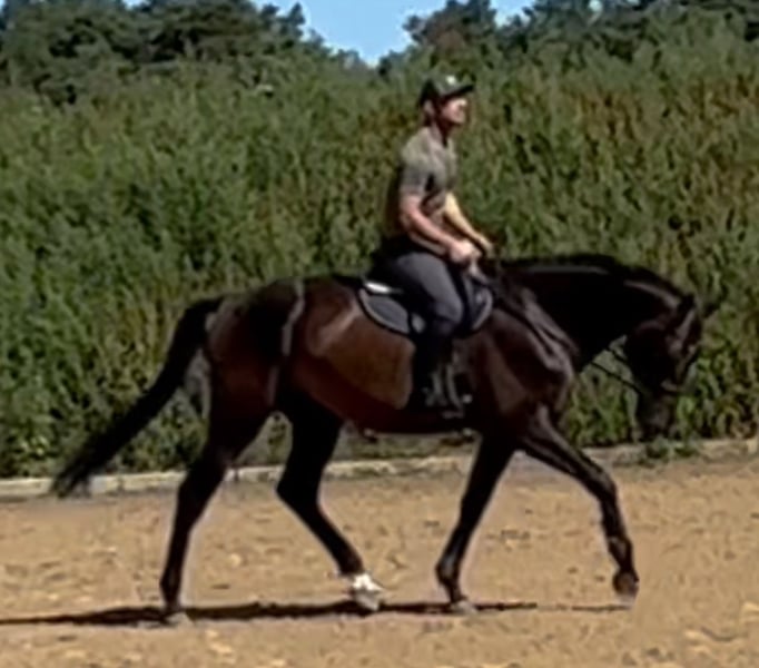 Der Wallach läßt sich sehr gut reiten und benötigt aber aufgrund seiner Größe noch etwas Zeit, um sich vollständig entwickelt zu haben. Derzeit wird er mehrfach in der Woche dressurmäßig gearbeitet und auch gesprungen, um so vielseitig wie möglich ausgebildet zu sein, Er zeigt sich immer motiviert und leistungsbereit. Er kennt ins Gelände zu gehen. Beim Verladen zeigt er sich genauso artig, wie er immer im Umgang ist. Die Röntgenbilder liegen ohne Befund vor und können jederzeit verschickt werden. Weitere Infos gern per whatsapp