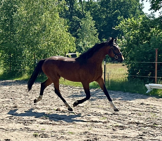 Zum Verkauf steht ein vielversprechender Wallach, geboren im Jahr 2021. Dieser elegante braune Deutsches Sportpferd hat ein Stockmaß von 175 cm und überzeugt durch seine herausragenden Bewegungen und sein harmonisches Erscheinungsbild. Er ist bestens geeignet für den Dressursport und zeigt bereits vielversprechende Ansätze in der Ausbildung. Mit seinem freundlichen Wesen und seiner Lernbereitschaft ist er sowohl für erfahrene Reiter als auch für ambitionierte Einsteiger geeignet, die ihm eine liebevolle und konsequente Ausbildung bieten möchten. Der Wallach ist gut erzogen, brav im Umgang und ist gesuna. Bei Interesse oder für weitere Informationen stehe ich gerne zur Verfügung. Besuchen Sie uns und überzeugen Sie sich selbst von diesem tollen Pferd.