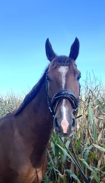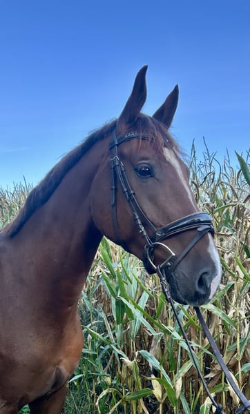 Tolles Nachwuchspferd für Dressurreiter oder ambitionierte Freizeitreiter. Zum Verkauf steht ein beeindruckender Dunkelfuchs-Wallach, geboren im Jahr 2020. Mit einem Stockmaß von 178 cm überzeugt er durch seine elegante Erscheinung und sein Potenzial für den Dressursport. Trotz seiner Größe sehr leichtfüßig und angenehm zu reiten. Sehr unerschrocken und kopfklar, daher auch als Freizeit- oder Geländepferd denkbar. Geht brav ins Gelände, allein und in der Gruppe. Bislang nur freizeitmäßig geritten und noch nicht auf dem Turnier vorgestellt. Bei Interesse stehe ich gerne telefonisch für weitere Informationen zur Verfügung.