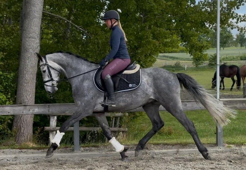 **Sales Advertisement: German Sport Horse** For sale is a talented German Sport Horse gelding, born in 2020. This beautiful gray stands at 160 cm and impresses with his striking appearance as well as his friendly nature. He is well-suited for show jumping and already shows promising potential in this discipline. With his balanced temperament and willingness to learn, he is suitable for both experienced riders and ambitious beginners looking for a promising horse for the future. The gelding is well-trained and has already gained initial experience in various situations. He is well-mannered in handling, both when leading and riding. If you are interested or need further information, please feel free to contact me. Viewings and test rides are possible by arrangement. We look forward to your inquiry!
