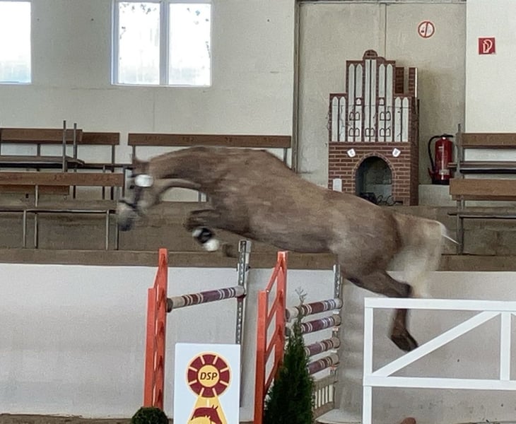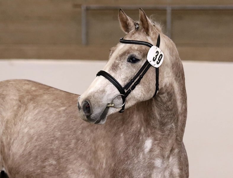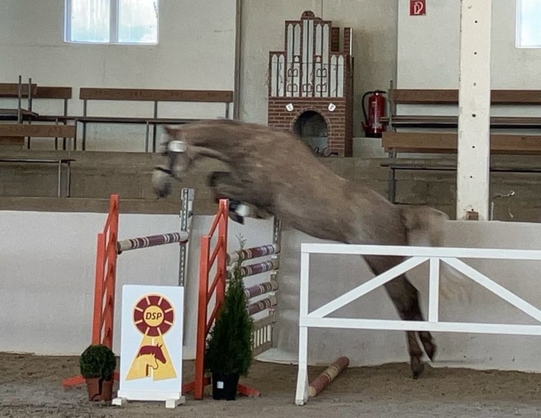 **Sales Advertisement: German Sport Horse - Gelding** For sale is a talented German Sport Horse gelding, born in 2020. This attractive grey stands at 162 cm and shows great potential in show jumping. Carlos impresses not only with his rideability and excellent work ethic but also with his balanced character. Currently placed up to show jumping A level. X-rays available. From the mother Alice by Askari, there are already 2 internationally successful offspring: Chico by Chap I, successful up to 1.45m in the USA, as well as Carina by Cellestial, successful up to 1.40m under Andre Thieme. If you are interested or have further questions, we look forward to your message!