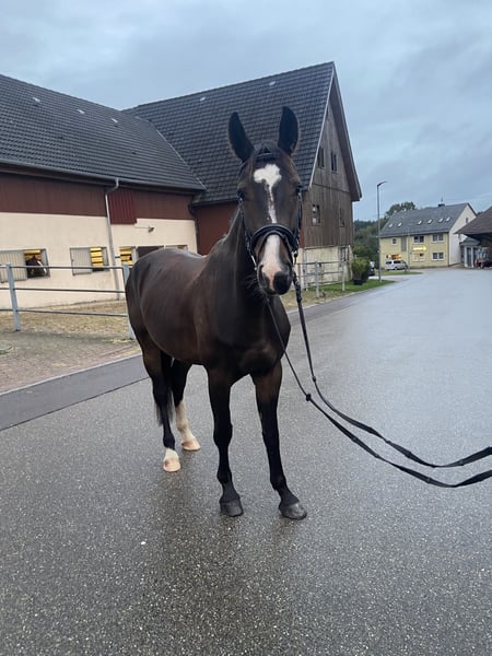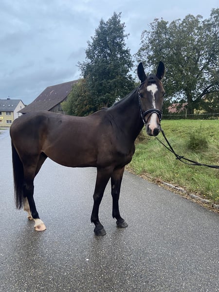 Zum Verkauf steht ein 6-jähriger Wallach vom Deutschen Sportpferd, abstammend von Now Or Never x Cola. Mit einem Stockmaß von ca. 1,65 m präsentiert er sich als moderner, sportlich aufgemachter Nachwuchs für den ambitionierten Springsport. Er zeigt Vermögen am Sprung, eine gute Übersicht im Parcours sowie eine gute Einstellung. Er ist sensibel, dabei aber händelbar und stets motiviert bei der Arbeit. Kein Anfängerpferd – geeignet für ambitionierte Reiter mit Gefühl, die ein talentiertes Nachwuchspferd weiter ausbilden möchten. • Geht alleine ins Gelände • Verladefromm und kennt Hängerfahren • Bockhuf vorhanden, aktuell ohne Einschränkung • Noch keine Röntgenbilder vorhanden Die Mutter selbst ist bis M platziert und konnte gute Platzierungen mit Amateurin in den niedrigen Klassen erreichen. Bei ernsthaftem Interesse freue ich mich über eine persönliche Kontaktaufnahme.