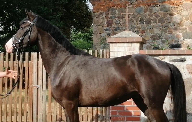 Unser Bugatti SB ist ein echter Hingucker - schön, auffällig und mit absoluter Wiedererkennungsgarantie! Bugatti ist bei uns geboren, menschenbezogen aufgewachsen und wurde zur professionellen Ausbildung in das Brandenburgische Haupt- und Landgestüt in Neustadt/Dosse gegeben. Dort wurde er Ende 2023 schonend und altersgerecht angeritten. Er ist ein kleiner Streber, absolut unkompliziert und begeistert mit seinem entspannten Wesen. Er zeigt drei sehr gute Grundgangarten und hat auch schon ein paar kleine Sprünge in der Freispringbahn absolviert, wobei er mit viel Übersicht bei der Sache war. Da er auf einem Bauernhof geboren wurde und aufgewachsen ist, sind Maschinen wie Traktoren, Hoflader, Mini-Bagger bis hin zu Laubbläsern und Kreissägen absoluter Alltag für ihn. Er ist dabei aufgeschlossen und beobachtet das Geschehen mit totaler Gelassenheit. Der Umgang mit Stuten ist kein Problem - im Stall war seine Pferdebox zwischen zwei Stuten und seine Mutter (mit Fohlen) stand direkt gegenüber. Derzeit befindet er sich in einem gemischten Stall mit Einzelboxen. Sein Vater der Neustädter Hengst Blanc Pain/T. war in der Dressur Kl. S siegreich. Im Jahr 2021 wurde Blanc Pain aufgrund seiner überdurchschnittlichen Eigenleistung im Sport sowie der Qualität seiner ersten beiden Fohlenjahrgänge vom Trakehnerverband mit dem Titel Elite-Anwärter ausgezeichnet! Im Jahr 2024 wurde ein Sohn des Blanc Pain zum Siegerhengst der Trakehner-Körung in Neumünster! Der Vollbruder von Bugatti´s Mutter "Lord Capri SB" konnte bereits seine ersten S-Platzierungen in der Dressur mit seiner Besitzerin sammeln, worauf wir sehr stolz sind. Aufgrund seiner Präsenz und seiner sehr guten Grundgangarten können wir uns Bugatti auch im Fahrsport im Einspänner oder Passgespann sehr gut vorstellen.