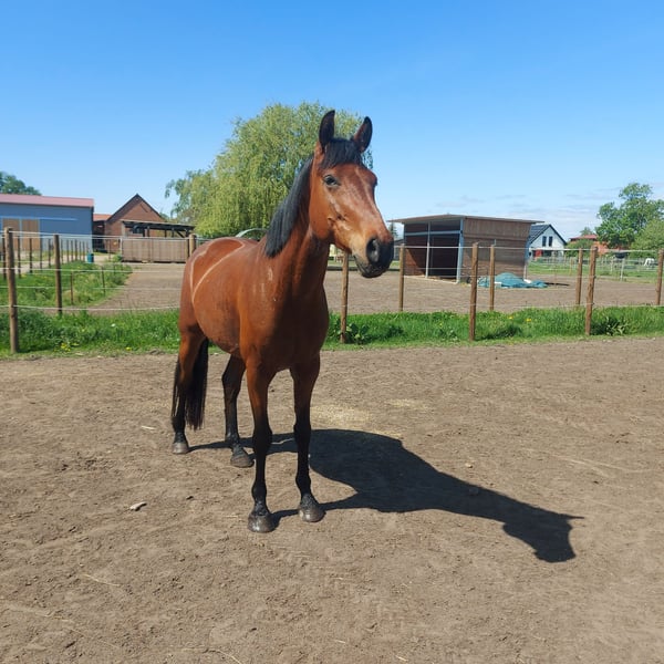 Verkaufe deutsches Sportpferd – Wallach, geb. 2020, braun, mit einem Stockmaß von ca 168 cm. Dieser gut longierte Freizeitbegleiter überzeugt durch sein angenehmes Wesen und seine ausgeglichene Art. Der Wallach hat gesundheitliche Befunde, die ihn aktuell als nicht reitbar einstufen. Er ist schick und zeigt sich im Umgang stets freundlich und kooperativ. Ein zuverlässiger Partner für ambitionierte Pferdebegeisterte, die keinen Wert auf das Reiten legen sondern ihre Passion in der Bodenarbeit oder ggf im Kurschefahren sehen. Alternativ als Beisteller abzugeben. Mit anderen Wallachen stets verträglich, Stuten bisher nicht probiert.