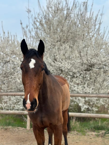 Leider muss ich mich von meinem Wallach Follow your Heart (Franky) trennen. Er ist Abstammend von Fürstenstern x Planitz. Franky ist super brav im Umgang– freundlich, verspielt und unkompliziert. Er ist für jeden Spaß zu haben und möchte seinem Reiter gefallen. Obwohl er dressurbetont gezogen ist, zeigt er am Sprung deutlich mehr Begeisterung und Talent. Er wurde bereits auf Turnieren vorgestellt – sowohl in der Dressur als auch im Springen – und hat sich dabei stets brav, ausgeglichen und rittig gezeigt. Franky leidet an einer chronischer Uveitis (periodischer Augenentzündung). Die Schübe lassen sich gut managen und beeinträchtigen ihn reiterlich derzeit nicht. Aufgrund dessen wird er jedoch nur als gehobenes Freizeitpferd verkauft. Ich wünsche mir für Franky ein liebevolles Zuhause bei Menschen, die ihm mit Ruhe, Geduld und Verständnis begegnen. Gern möchte ich ihn an einen erfahrenen Reiter verkaufen der ihn weiter fördert. Bei ernsthaftem Interesse oder weiteren Fragen gerne per Privatnachricht melden.