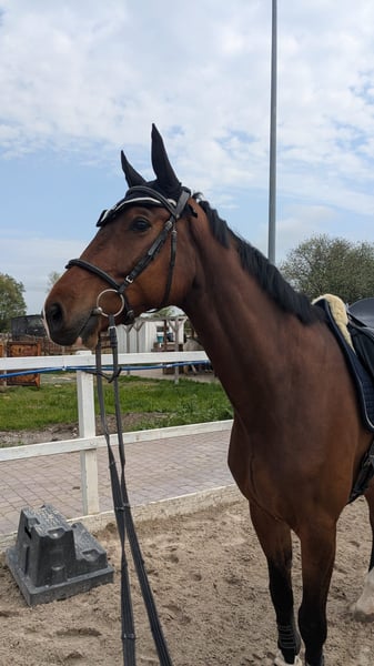Unfortunately, I have to part with my gelding Follow Your Heart (Franky). He is by Fürstenstern out of Planitz. Franky is very well-behaved and friendly in handling—playful, uncomplicated, and eager to please his rider. Although he has a dressage-oriented pedigree, he shows much more enthusiasm and talent over fences. He has already been competed in both dressage and jumping, consistently demonstrating a calm, balanced, and rideable demeanor. Franky suffers from a chronic uveitis (periodic eye inflammation). The flare-ups are well-managed and currently do not affect his riding ability. Because of this, he is being sold solely as a high-quality leisure horse. I am looking for a loving home for Franky with people who will treat him with patience, calmness, and understanding. I would prefer to sell him to an experienced rider who can continue to support his development. For serious inquiries or further questions, please feel free to contact me via private message.