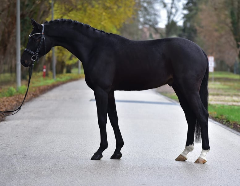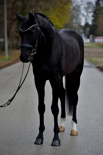 German sport horse – ideal for dressage! For sale is an elegant and talented gelding, born in 2020. The black-brown horse impresses with his striking appearance and pleasant temperament. Standing at 172 cm, he offers the perfect size for ambitious riders. This sporthorse has been specifically trained in dressage and shows great potential for upcoming competitions. His quality of movement and eagerness to learn make him a promising partner for a dedicated rider. Please feel free to contact me for more information or to arrange a viewing. A genuine sport horse looking for a new home!