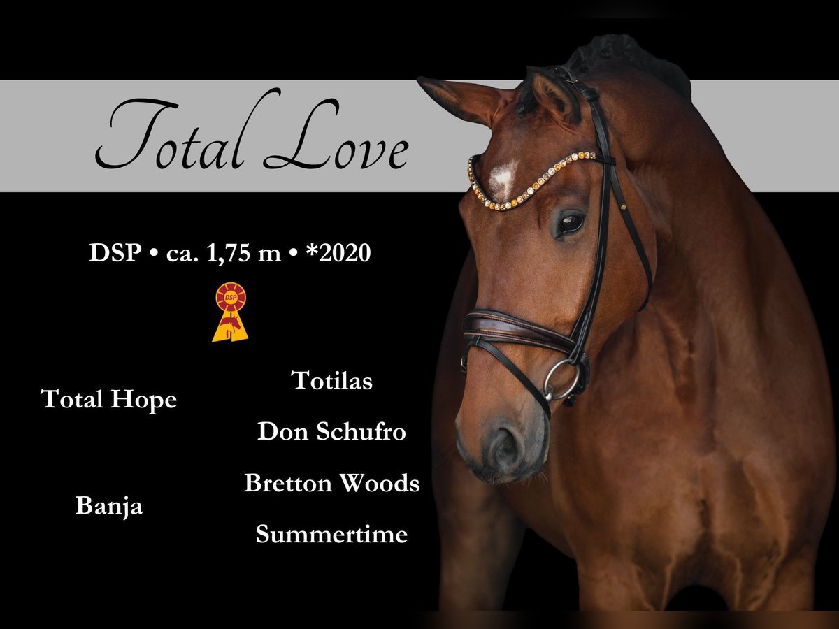 Dear interested parties, For appointment scheduling for trial rides, please send me a WhatsApp message. For further questions, I can be reached via WhatsApp during the day, and by phone best between 4 PM and 7 PM. I look forward to hearing from you. ⚜️Total Love⚜️ Age: 5 years (2020) Height: approx. 1.75 m Lineage: Total Hope x Bretton Woods Training level: Successful in Dressage Horse A, placed in L, started M X-ray: Good X-ray images available LOCATION: 84048 Mainburg For sale is a stunning 5-year-old son of Totilas with outstanding quality and an excellent success record. He impresses with an exceptional, rhythmical walk with enormous overreach, an impressive uphill canter, and an expressive trot mechanic. He has a heart of gold, is very uncomplicated and well-behaved in daily training as well as at competitions. He is very beautiful and easy to ride. He is currently on his way to class M. In riding horse and dressage horse tests of classes A and L, he has been placed multiple times with scores up to 8.5. He also goes out calmly on trails. Good X-ray images are available. An extraordinary young horse with excellent quality and top-notch character. ⚜️Tel: 0171-3438949 ⚜️a.devittorio@web.de ⚜️https://www.ehorses.de/angelinadevittorio Facebook and Instagram Angelina De Vittorio