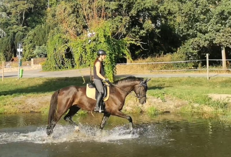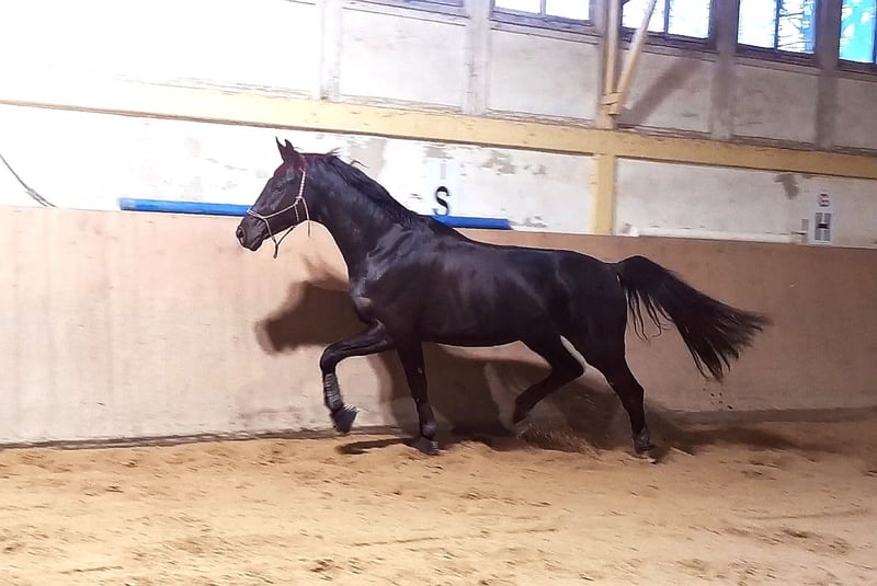 For sale: German sport horse – Black gelding, born in 2020 Up for sale is a stunning, elegant, and versatile German sport horse gelding. Born in 2020, he impresses with his noble appearance and excellent pedigree. I purchased him myself as a young dressage prospect up to S level (at a high purchase price!). He has three consistently very good basic gaits that feel fantastic. He has a comprehensive pre-purchase examination from early 2024, which was completely clean. There are also recent, up-to-date X-rays available. Over time and through training, a few findings and challenges have emerged, making me feel that further training with my rather ambitious sport goals might be too risky. He loves outdoor riding and has enjoyed being a trail horse since he was three years old. Ideally, he could find a new home as a trail or cross-country horse. If you are interested or have further questions, I am happy to provide transparent information in a conversation for the well-being of the horse.