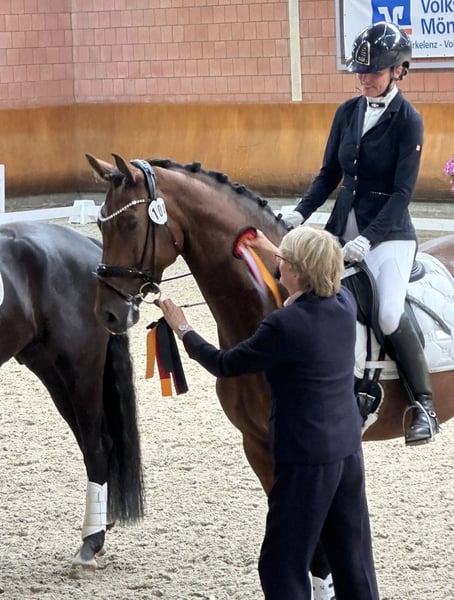 Herzensbrecher, Herzenspferd und toller Kumpel in liebevolle und fördernde Hände zu verkaufen! Wunderschöner, braver 7j brauner Wallach von Franklin x Cormint mit einem Stockmass von 166cm. Er ist gleichermaßen, seiner Abstammung entsprechend, für Dressur, Springen und Vielseitigkeit geeignet. Auch als Nachwuchspferd für den Fahrsport könnte ich ihn mir sehr gut vorstellen. Erst spät angeritten konnte er sich in seiner ersten Turniersaison mehrfach in A* und A** Dressur sowie Dressurpferde A und L platzieren und war auch direkt im Springen platziert. Im Gelände ist er zeitbedingt noch unerfahren aber sehr lieb! Auch durchs Wasser und über die ersten Natursprünge ist er direkt mit Freude gegangen. Er ist sehr menschenbezogen, liebt es zu kuscheln und beschäftigt zu werden. Er zeigt sich bislang mit einfach jedem Pferd super verträglich! Aktuell wird er aufgrund Zeitmangel meinerseits von einem 11j Kind mitgeritten und zeigt sich auch da sehr lieb und nervenstark. Generell verfügt er über eine tolle Arbeitseinstellung mit angenehmen Go und dazu mega sitzbequem! Er verfügt über gute Röntgenbilder von Ende 2024. Er macht jeden Tag Freude, und bringt einen oft zum Lachen unser kleiner Quatschkopf! Nur Langeweile ist nichts für ihn. Er liebt es, täglich seinen Job gut zu machen . Da ich noch 3 weitere Jungpferde habe, suche ich für diesen unverbrauchten Goldschatz ein förderndes 5 Sterne Zuhause Videos können in den nächsten Tagen gerne verschickt werden! Platz vor Preis! Privatverkauf Anfragen bitte per WhatsApp 015755032045
