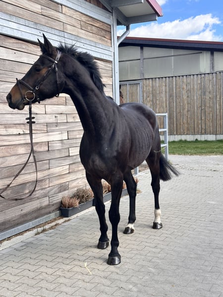 📞 Bei Interesse bitte telefonisch melden: Festnetz: 034292 / 291998 Mobil: 0176 / 22616295 🕘 Mo.–Fr. 09:00–18:00 Uhr | Sa. 09:00–15:00 Uhr | Sonntag Ruhetag Aleandro – 7-jähriger Wallach mit erster Turniererfahrung und guter Einstellung Aleandro ist ein 7-jähriger Wallach mit einem Stockmaß von ca. 1,66 m in dunkler Jacke. Er überzeugt durch seine angenehme Rittigkeit, seinen klaren Kopf und seinen unkomplizierten Charakter. Der Wallach ist gesund und brav im täglichen Umgang und zeigt sich sowohl unter dem Sattel als auch im Handling zuverlässig. Er konnte bereits erste Turniererfahrung sammeln und war zweimal in Springpferdeprüfungen der Klasse A am Start, davon einmal platziert. Im Parcours zeigt er sich aufmerksam, vermögend und rittig. Aleandro eignet sich sowohl für Reiter, die ein Pferd für den weiteren sportlichen Aufbau im Springsport suchen, als auch für ambitionierte Freizeitreiter. Steckbrief: Name: Aleandro Alter: 7 Jahre Stockmaß: ca. 1,66 m Farbe: dunkle Jacke Abstammung: Acomet x Santiano Disziplin: Springen (Springpferde A platziert) Gesundheit: gesund Charakter: brav, unkompliziert, rittig Besichtigung & Probereiten: Probereiten: 30 € pro Pferd (max. 2 Reiter) Feiertags: 50 € Absagen mind. 24 Std. vorher, sonst kostenpflichtig Vorführen durch Bereiter: 25 € Für die Terminbestätigung bitte vollständigen Namen & Adresse angeben. Ankaufsuntersuchung möglich. Transport kann organisiert werden. 📍 Standort: Leipzig 💰 Preis: auf Anfrage 🌐 www.deutsche-pferde-boerse.de Hinweis: Stockmaß-Angaben sind Schätzungen des Verkäufers und keine zugesicherten Eigenschaften. Der Verkauf erfolgt im Kundenauftrag.