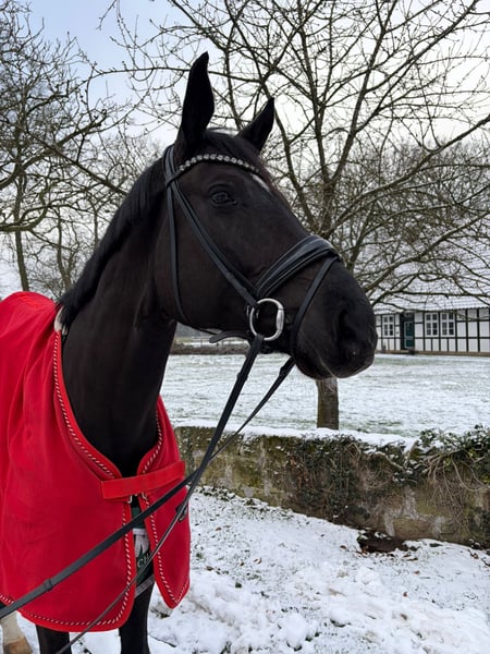 Dieser 7 jährige, elegante und bildschöne Dressur Wallach sucht ein neues 5* Zuhause Der absolut unverbrauchte bildschöne Rapp Wallach wurde im Jahr 2019 geboren und beeindruckt durch sein harmonisches Erscheinungsbild, sowie sein angenehmes Temperament. Mit einem Stockmaß von 172 cm bietet er die perfekte Größe für die anspruchsvollen Reiter, die Wert auf Qualität und Bewegungsfreiheit legen. Sein ausgeprägtes Talent im Dressursport macht ihn zu einem vielversprechenden Partner für die ersten Turniere. Fabergé ist spät angeritten worden und und wurde schonend ausgebildet. Er ist jetzt auf dem Weg zur M-Dressur . Er ist zuverlässig und zeigt stets eine positive Einstellung . Im Umgang ist er absolut problemlos Er ist kein Anfängerpferd. Bei Interesse oder für weitere Informationen stehe ich gerne zur Verfügung. Besichtigung und Proberitte sind nach Vereinbarung möglich.