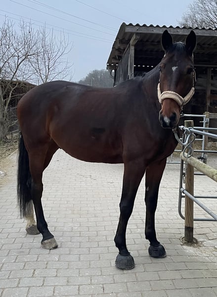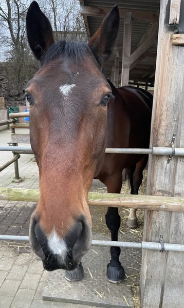 Este joven caballo de doma muestra una mente muy clara, una gran disposición al trabajo y al aprendizaje, además de una extrema cercanía con las personas. Siempre se esfuerza por agradar a su jinete, le encanta acurrucarse y disfruta de toda atención. Actualmente, está montado en nivel de doma A. En el campo, conoce la monta en grupo, pero aún no ha sido montado solo en el exterior. En estas ocasiones, se muestra siempre tranquilo y atento. Fue presentado por su criador para salto, aunque en mi mano no se ha continuado con esa disciplina. Sin embargo, en su formación, se evidencia claramente que fue criado para el salto: mucha perspectiva, talento y alegría por la tarea. Por ello, busco un jinete de salto que le pueda ofrecer un entorno estimulante para que desarrolle todo su potencial, ya que es un diamante en bruto en el salto 💎. Un caballo honesto, sensible y con un gran corazón, que desea brindar mucha alegría a su jinete. Para más información o si tiene alguna pregunta, no dude en contactarme. Se pueden solicitar vídeos. La visita y la prueba de monta se realizan con cita previa. Por favor, tenga en cuenta que, para evitar el turismo ecuestre, se cobrará una tarifa de prueba de 40 €.