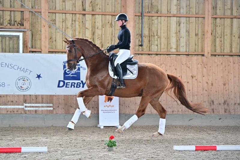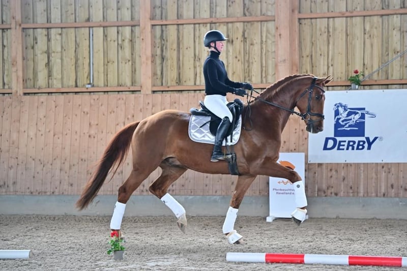 Wir verkaufen unseren 7jährigen typvollen, mit sehr guten Grundgangarten ausgestatteten, 1,70m großen Wallach Fürst Heidelberg. Fürsti ist bei uns auf dem Hof geboren, aufgewachsen und durfte seine ersten Lebensjahre auf großen Weiden heranwachsen. Seit Geburt an wurde er regelmäßig entwurmt, beim Hufschmied vorgestellt, zahnärztlich behandelt und fachgerecht mit Mineralstoffen versorgt. Auch osteopathisch wurde er bereits häufig behandelt. Fürsti kann bereits einige Erfolge verzeichnen, so gewann er sowohl 3-jährig, als auch 4-jährig den Havelländer Freilaufwettbewerb. Er wurde außerdem im vergangenen Jahr in Dressurpferdeprüfungen der Klasse A vorgestellt und konnte dabei einen Sieg und weitere Platzierungen erreichen. Jetzt lernt er fleißig Lektionen der Klasse L und M, die er sehr gut annimmt. Fürsti ist ein sehr menschenbezogenes Pferd, das eine Bezugsperson braucht, mit der er arbeiten und ausgiebig schmusen kann. Er ist zudem sehr arbeitswillig und leichtrittig und gibt allen Reitern ein tolles Reitgefühl. Auch schmiede- und verladefromm ist er. Anfragen bitte an: Tel.: 01739343732