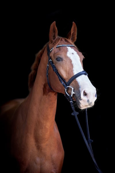 With a heavy heart, I am seeking a new home for my 7.5-year-old gelding, where he will continue to be supported and lovingly cared for. Standing approximately 175 cm (17.1 hh) and featuring a striking appearance as a beautiful chestnut with plenty of white markings, he is truly eye-catching. He is sired by Champion x Paulaner. He has been gently and horse-appropriately backed and has been trained in accordance with his age. His training is clearly focused on dressage – lateral movements and the standard dressage movements are no problem for him. He has been successfully competed at local dressage competitions up to level A. There is also some talent for jumping: when free-jumping, he shows motivation and ability, although his primary focus so far has been on dressage. His greatest highlight is his exceptionally kind and people-oriented personality: He is absolutely well-behaved and uncomplicated in handling, even in unfamiliar environments. At competitions and in new surroundings, he quickly becomes very relaxed and focused. Whether at the blacksmith, alone in the field, or during daily handling – he remains friendly and reliable at all times. He loves attention, closeness, and cuddling, and enjoys contact with his humans immensely. He is also social and easy-going with other horses, often playful. Despite his gentle nature, he is not suitable for absolute beginners but would thrive with an experienced rider who can provide him with security and enjoys supporting his ongoing development. He receives regular physiotherapy and is always carefully cared for. A veterinary health check (AKU) can of course be arranged. - Location: Cottbus - Equipment can be included upon request We are looking for a home where he will be accompanied with time, heart, and appreciation. This is not a rushed sale. If you are genuinely interested, we look forward to hearing from you.