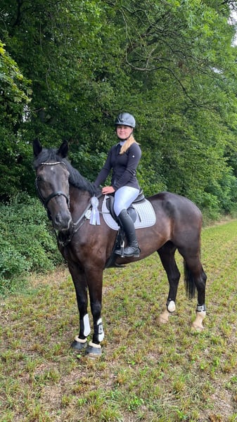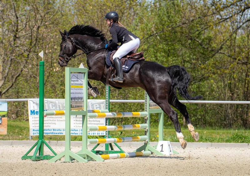 Zum Verkauf steht ein talentierter und sehr rittiger Wallach, der mit Vermögen, Übersicht und guter Einstellung am Sprung überzeugt. Aktuell wurde er bereits bis 1,15 m (Klasse L mit steigenden Anforderungen) vorgestellt und zeigt sich dabei stets motiviert, leistungsbereit und zuverlässig. In Springpferdeprüfungen konnte er bereits Noten bis 8,1 erzielen. Auch unter dem Sattel überzeugt er durch seine angenehme Rittigkeit und eine solide Grundausbildung. Lektionen wie Schenkelweichen sowie Galoppwechsel führt er sicher aus. Durch seine gute Ausbildung kann er problemlos auch in der Dressur vorgestellt werden, wodurch er ebenfalls für den Vielseitigkeitssport interessant ist. Im täglichen Umgang zeigt er sich unkompliziert, brav und zuverlässig. ✔️ verladefromm ✔️ geht alleine sowie in der Gruppe ins Gelände ✔️ angenehm im täglichen Handling ✔️ verträglich mit anderen Pferden und kennt größere Gruppen auf der Koppel Ein sehr interessantes Pferd für ambitionierte Reiter, die einen zuverlässigen Partner mit Qualität, Charakter und weiterem Entwicklungspotenzial suchen. Videos sind vorhanden. ⸻ 📞 Kontakt & Besichtigung Anfragen bitte telefonisch unter: 📞 0341 / 98995223 🕘 Mo.–Fr. 09:00–18:00 Uhr 🕘 Sa. 09:00–15:00 Uhr 🚫 Sonntag Ruhetag ⸻ 🐎 Probereiten 💶 30 € pro Pferd (max. 2 Reiter) → wird bei Kauf gutgeschrieben 💶 Feiertage: 50 € Absagen bitte mindestens 24 Stunden vor dem Termin, andernfalls wird dieser berechnet. 💶 Vorführen durch unsere Bereiter (ohne Probereiten / Bodenarbeit etc.): 25 € pro Pferd ⸻ Ankaufsuntersuchungen können selbstverständlich durch Ihren oder unseren Tierarzt durchgeführt werden. Beim Transport ins neue Zuhause unterstützen wir ebenfalls gerne. 🌐 www.deutsche-pferde-boerse.de Weitere interessante Verkaufspferde befinden sich in unserem Verkaufsstall sowie auf unserer Homepage. Hinweis: Stockmaßangaben sind Schätzungen des Verkäufers und stellen keine zugesicherten Eigenschaften dar.