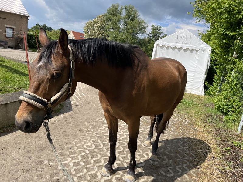 9- jähriger Wallach in erfahrene Hände abzugeben. Er ist sehr sensibel und feinfühlig. Macht einen super Sprung, möchte sich immer von seiner besten Seite zeigen. Ein Pferd zum sofort losreiten mit dem gewissen Feingefühl. Kann mit Zubehör übernommen werden. Telefonnummer 01773403962