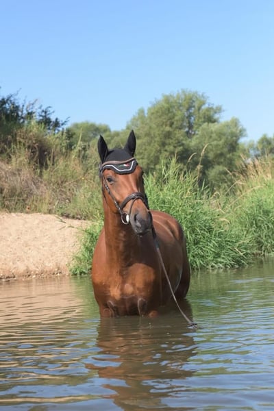A 9-year-old family horse is looking for a new home. We are seeking a loving home for our 9-year-old gelding Casper, where he won't just be "ridden along," but will receive the attention he demands daily. Casper has been ridden by both our daughter and my husband. He confidently guided our then 14-year-old daughter in show jumping and has achieved placings in L-class show jumping competitions with my husband. He is a true all-rounder: whether on the arena, enjoying a relaxed hack, or simply taking a break in the pasture to unwind. Sport is not his top priority—what matters most are the daily moments of interaction and attention. We are giving him up with a heavy heart, as we wish to pursue further sporting development and find him a home where he will continue to be appreciated as he deserves. Casper is a loyal companion who brings a smile to your face with his cheerful disposition every day. If you are genuinely interested and have further questions, I’d be happy to tell you more about him.