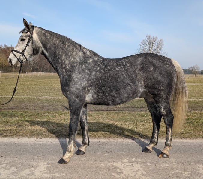 For sale is a German Sport Horse gelding, born on May 15, 2017, with an interesting pedigree: DeLorean x Dafür nicht xx (by Doyen xx). "Dressman" presents himself as a modern, athletic type with harmonious conformation and an appealing presence. His pedigree combines dressage bloodlines with Thoroughbred influence, providing excellent potential for versatile further training. He has already been backed and worked in all three basic gaits under saddle. He is familiar with fundamental riding aids. Subsequently, he enjoyed a long turnout break and is currently not in active training. Due to this pause, he should be gradually reintroduced to work. He shows himself to be a sensitive and attentive horse, benefiting from calm and gentle handling. In daily interactions, he is friendly and observant. An interesting horse for experienced riders who enjoy developing and nurturing a horse with potential themselves. Details: - Breed: German Sport Horse (DSP) - Sex: Gelding - Date of Birth: May 15, 2017 - Pedigree: DeLorean x Dafür nicht xx (by Doyen xx) - Training Level: backed - Current Status: extended training break / turnout If seriously interested, we look forward to your message.