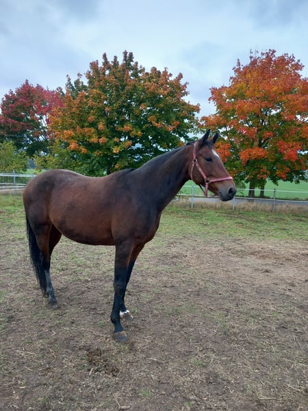 Diese hübsche 13-jährige Stute (ca. 1,65 m) sucht ein liebevolles Zuhause, wo Reiten zweitrangig ist und der Spaß an Bodenarbeit, Vertrauen und gemeinsamer Zeit im Vordergrund steht. Sie ist noch roh, aber sehr neugierig, aufgeschlossen und bemüht, ihrem Menschen zu gefallen. Zwar ist sie anfangs noch schreckhaft und nervös, macht aber alles mit, wenn man ihr Sicherheit gibt. Sie hat bereits zwei gesunde Fohlen großgezogen und sich als liebevolle und fürsorgliche Mutter gezeigt – daher eignet sie sich auch hervorragend als Zuchtstute. In der Herde ist sie ranghoch und fühlt sich in einer Wallachherde am wohlsten. Gesucht wird ein Herzensmensch mit Ruhe und Geduld, der Freude an Bodenarbeit, Natural Horsemanship oder Zucht hat und ihr Zeit gibt, Vertrauen zu fassen. Tausch wäre ebenfalls möglich.13-jährige Stute ca. 1,65 m – sensibel, ehrlich und mit Herz Diese hübsche 13-jährige Stute (ca. 1,65 m) sucht ein liebevolles Zuhause, wo Reiten zweitrangig ist und der Spaß an Bodenarbeit, Vertrauen und gemeinsamer Zeit im Vordergrund steht. Sie ist noch roh, aber sehr neugierig, aufgeschlossen und bemüht, ihrem Menschen zu gefallen. Zwar ist sie anfangs noch schreckhaft und nervös, macht aber alles mit, wenn man ihr Sicherheit gibt. Sie hat bereits zwei gesunde Fohlen großgezogen und sich als liebevolle und fürsorgliche Mutter gezeigt – daher eignet sie sich auch hervorragend als Zuchtstute. In der Herde ist sie ranghoch und fühlt sich in einer Wallachherde am wohlsten. Gesucht wird ein Herzensmensch mit Ruhe und Geduld, der Freude an Bodenarbeit, Natural Horsemanship oder Zucht hat und ihr Zeit gibt, Vertrauen zu fassen. Platz vor Preis! ✨ Wäre auch am Tausch interessiert