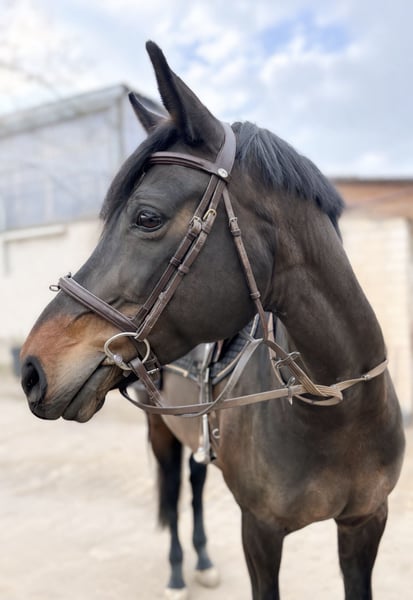 Zum Verkauf steht eine außergewöhnlich hübsche & liebe schwarzbraune Stute. (D‘Inzeo X Converter) „Emma“ ist im Jahr 2012 geboren, wird also 2026 noch 14 Jahre alt und hat ein Stockmaß von 168cm. Aufgrund ihres ausgeglichenen Temperaments können wir sie uns sehr gut als Kinder-, Jungendpferd oder auch für ängstliche Reiter oder Wiedereinsteiger vorstellen. Emma ist dem Menschen sehr zugewandt, freundlich und stets einfach im Handeling. Sie ist angenehm fleißig unter dem Sattel- man benötigt weder Sporen noch Gerte- dennoch ist sie auch nie zu flott- sie zeichnet sich durch 3 sehr schöne, sitzbequeme GGA aus. Auch im Gelände zeigt Emma stets Nervenstärke und behält in jeder Situation einen klaren Kopf. Sie geht alleine als auch in der Gruppe ausreiten. Mit anderen Pferden ist sie sehr vergänglich, geht aktuell täglich aufs Paddock oder die Weide und steht über Nacht in einer Box. Offenstallhaltung können wir uns aber auch sehr gut für sie vorstellen. Wenn Sie Emma kennenlernen möchten melden Sie sich gerne bei uns. Das Probereiten ist jederzeit möglich- jedoch berechnen wir eine Gebühr von 30,00€ die bei Kauf selbstverständlich verrechnet wird. Verkauf erfolgt im Auftrag